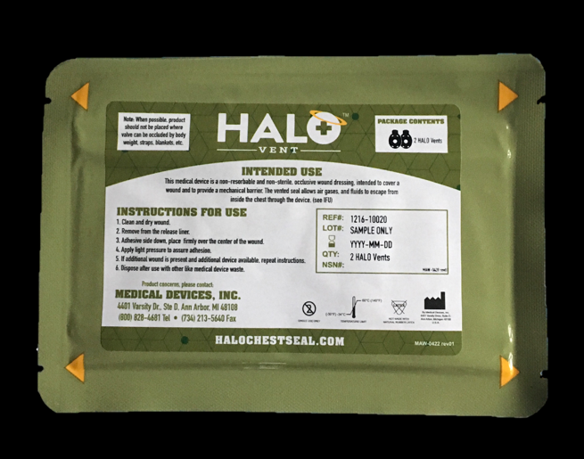 Halo Vent was created to treat tension pneumothorax, the second leading cause of preventable death on the battlefield. A durable, vented dressing with an aggressive adhesive is easy to use and performs in a wide range of operational environments.
