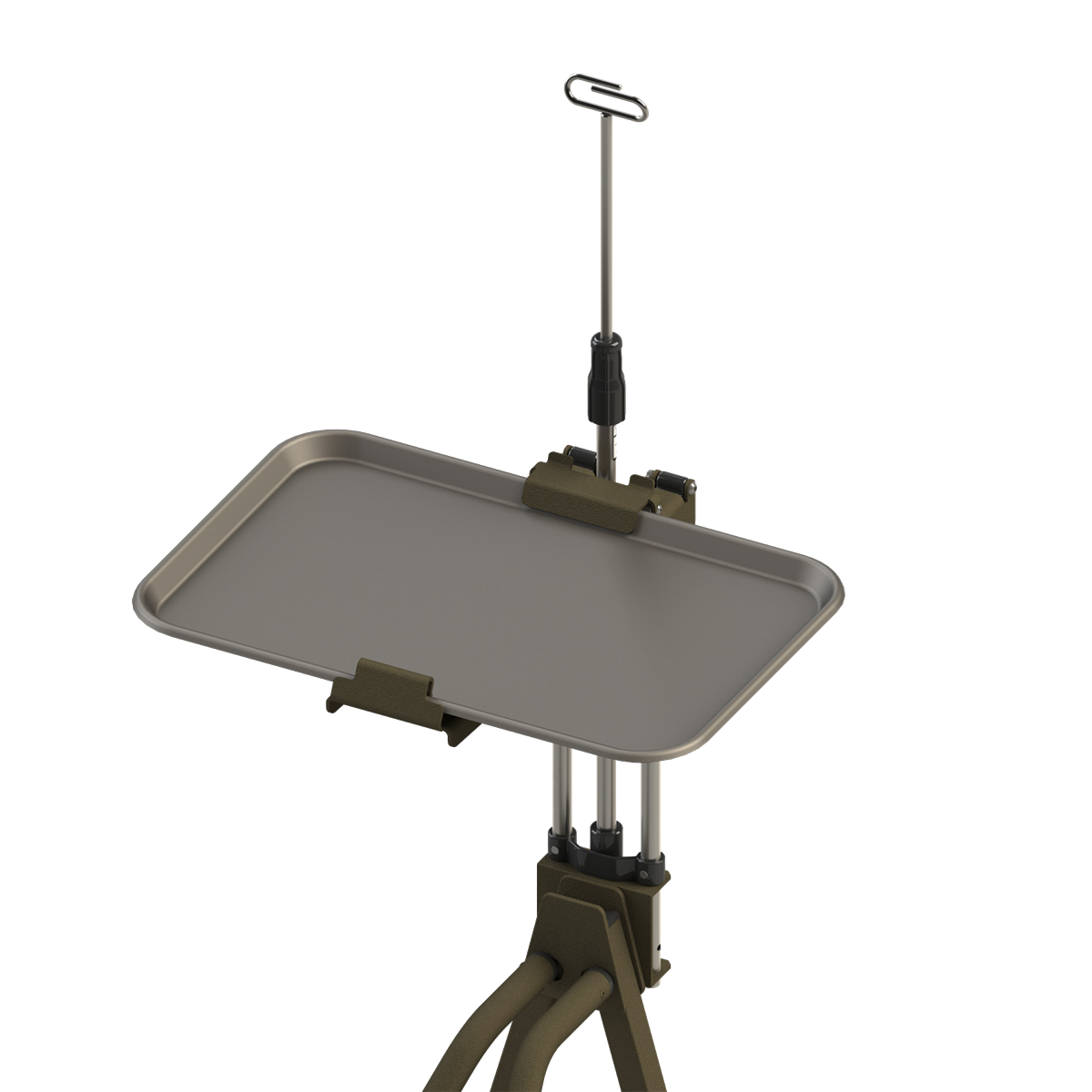 The Mayo Tray is a lightweight but sturdy and capable tray. Designed to provide a surface for medical instruments during advanced treatment. Positioning around the patient can be customized by moving track and bracket to one of four positions.